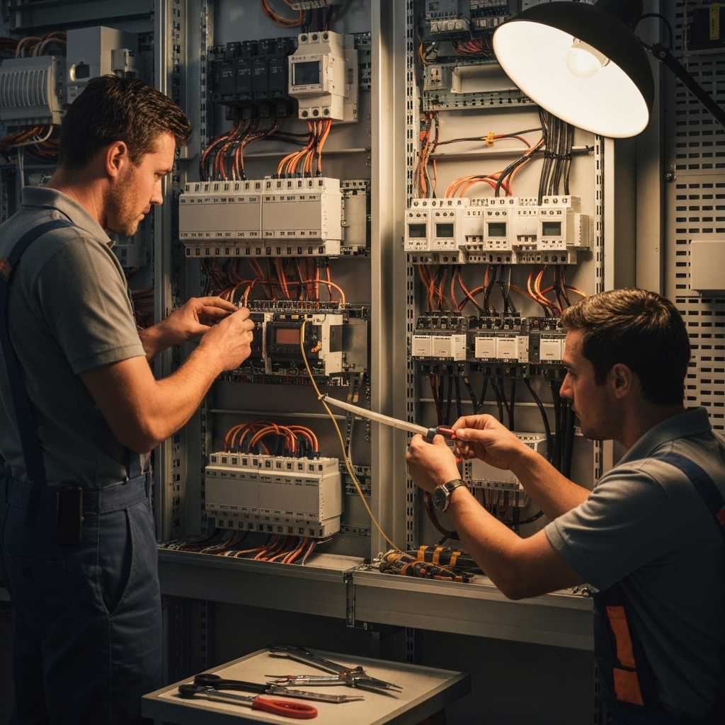 Dalle fondamenta elettriche alla connettività di rete, realizziamo infrastrutture complete per la tua azienda. Progettiamo e installiamo impianti elettrici a norma, quadri di distribuzione e cablaggi strutturati in rame e fibra ottica. Reti LAN/WLAN performanti, armadi rack e certificazioni: un unico interlocutore per alimentare e connettere il tuo business.